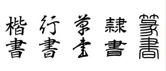 Shodo has basic 5 figures of writing Kanjis, 篆書(Tensho)、隷書(Reisho)、草書(Sosho)、行書(Gyosho)、楷書(Kaisho).